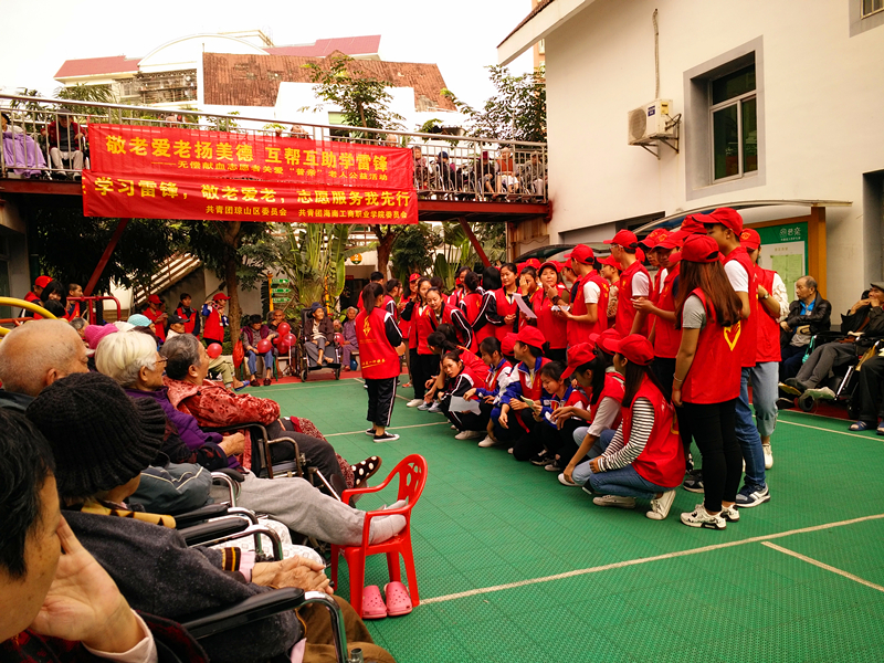 來自海南省衛(wèi)生學(xué)校志愿者的一曲《愛的號碼牌》拉開了當天活動序幕。志愿者們準備了一系列節(jié)目,舞蹈《告白氣球》、歌曲《學(xué)習(xí)雷鋒好榜樣》讓現(xiàn)場洋溢著歡聲笑語;顒幼詈,海南省衛(wèi)生學(xué)院志愿者利用自己的專業(yè)知識,帶領(lǐng)全場老人做起“手指操”,更是將氣氛帶到高潮,每位老人臉上都綻放著燦爛的笑容。除了給老人表演節(jié)目,志愿者們還給老人們送上了慰問品。
