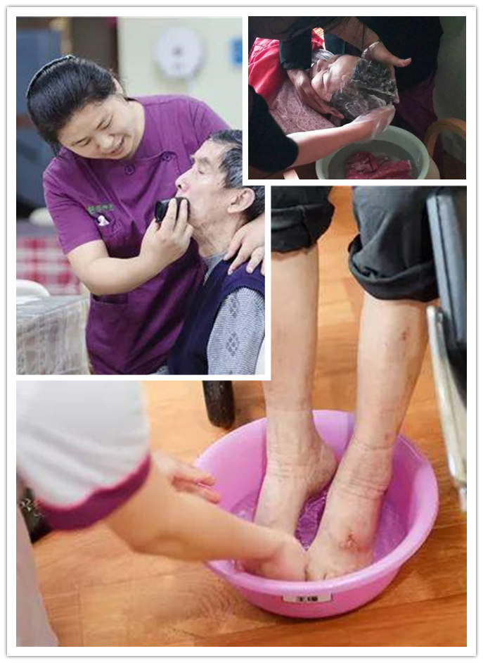照顧完老人吃晚飯,待老人們稍事休息,護(hù)理人員們就開始著手幫助老人們清潔個(gè)人衛(wèi)生。