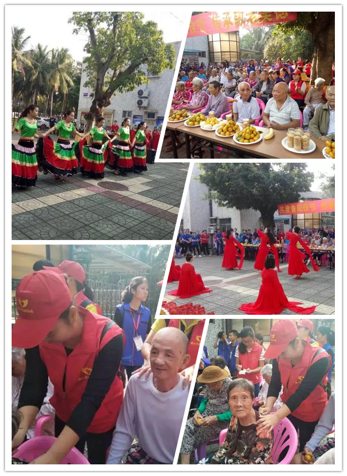 下午,?谑械诙咝W(xué)和?谑幸恢械闹驹刚邆円瞾斫o老人們表演節(jié)目,二十七小的家長還為老人們帶來了美味的海南粉,希望爺爺奶奶吃了長壽粉,身體健健康康,長長久久。