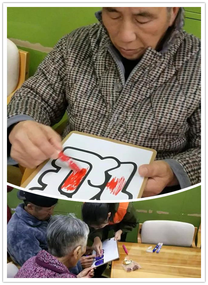 ▲老人們玩涂鴉,鍛煉手指功夫