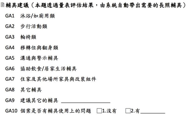 而最后一部份系統(tǒng)會(huì)自動(dòng)帶出案主可能需要的輔具,省去輔具評(píng)估人力的需求,這樣做有好有壞,雖然節(jié)省了人力,但我們不能忘記有客制化的需求在,另外針對(duì)身障者輔具評(píng)估可不是這么簡(jiǎn)單的事情,希望衛(wèi)福部能保留輔具中心及甲類(lèi)評(píng)估人員的專(zhuān)業(yè)及角色定位。
