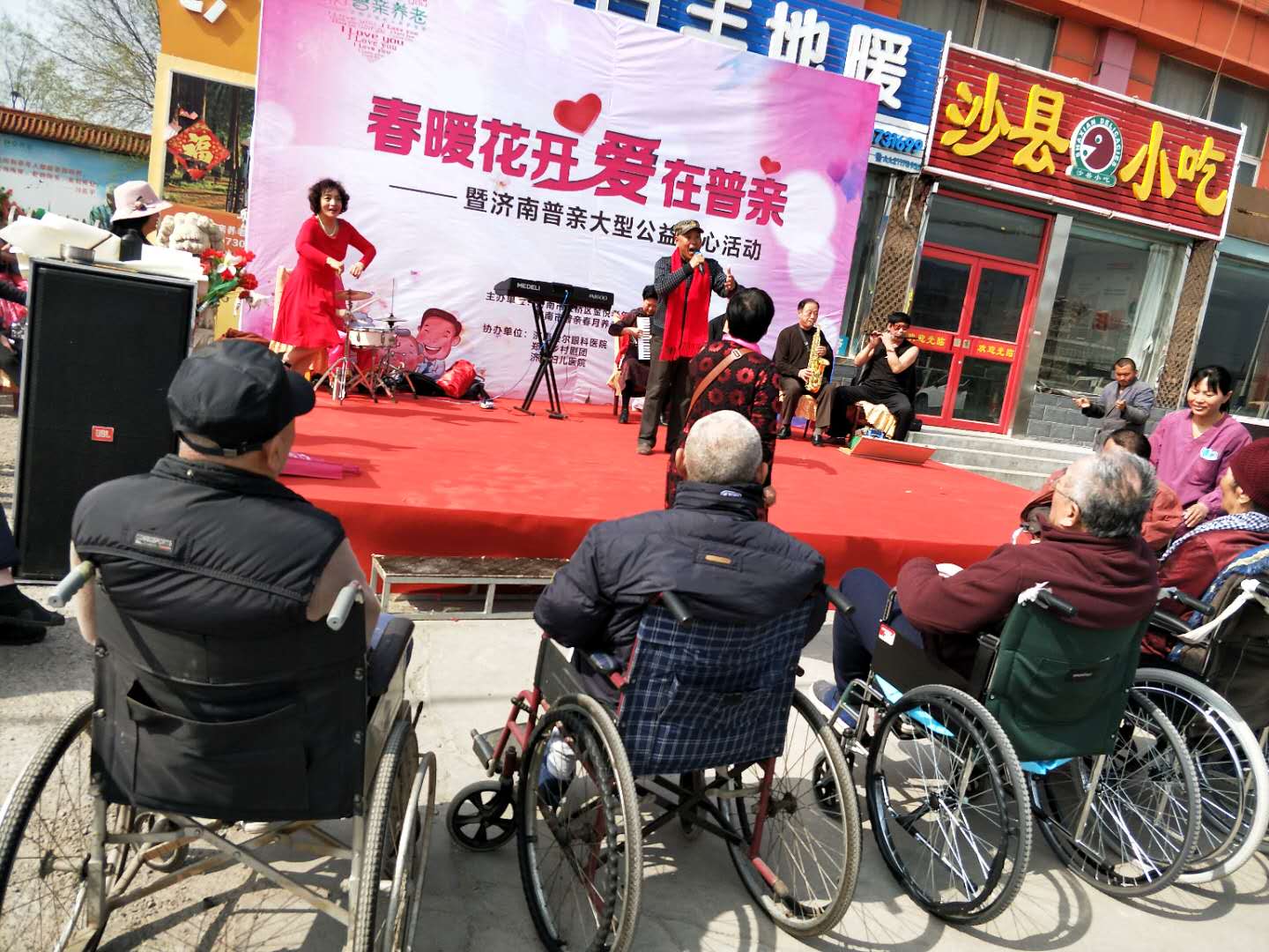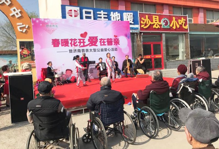 3月31日,由濟(jì)南普親金悅老年養(yǎng)護(hù)中心主辦,濟(jì)南婦兒醫(yī)院、濟(jì)南愛(ài)爾眼科醫(yī)院承辦的《春暖花開(kāi)、愛(ài)在普親》公益活動(dòng)在濟(jì)南市大橋鎮(zhèn)舉行。來(lái)自濟(jì)南五柳島愛(ài)心藝術(shù)團(tuán)、鄭集鄉(xiāng)劇團(tuán)、鵲山小學(xué)志愿團(tuán)的演員們?yōu)槠沼H養(yǎng)護(hù)中心的老人和當(dāng)?shù)厥忻穹瞰I(xiàn)了一臺(tái)精彩演出。據(jù)悉,愛(ài)爾眼科、濟(jì)南婦兒醫(yī)院的專(zhuān)家還為現(xiàn)場(chǎng)的老人和市民進(jìn)行了免費(fèi)健康咨詢(xún)和視力檢查。