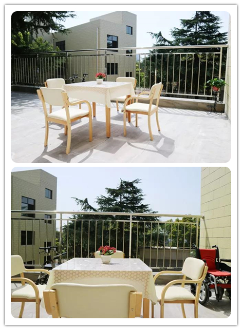 設(shè)于二樓的陽(yáng)臺(tái),是老人們經(jīng)常光顧的地方;他們?cè)谶@里曬太陽(yáng)、做鍛煉,與家屬及志愿者們聊天、下棋、做手工,收獲快樂(lè)也傳遞快樂(lè)。
