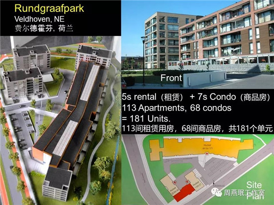 在中國,大項(xiàng)目可能更加適用一些,所以我展示這樣比較大型的終身照料設(shè)施。這個(gè)項(xiàng)目有260多間的普通公寓,還有150間的短期康復(fù)訓(xùn)練用的公寓。這個(gè)樓本身是混合使用的,一、二層的設(shè)施可以對(duì)周邊社區(qū)開放。