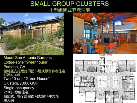 這個(gè)項(xiàng)目提出了綠色房子的理念,這個(gè)理念在歐洲本身已經(jīng)存在40多年了,美國近十年來,引進(jìn)了小組團(tuán)、小規(guī)模的護(hù)理設(shè)施,并且給它取了這樣一個(gè)名字,目前在美國非;穑唧w的信息大家也可以看到。