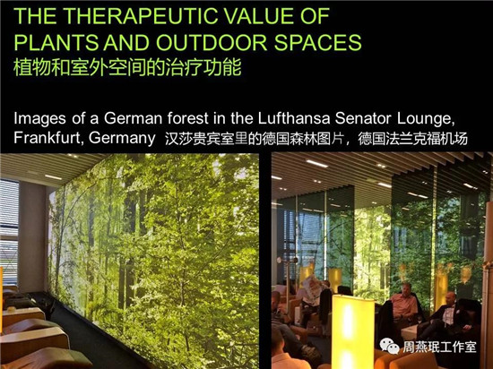 植物對(duì)于老人的身體健康在過去的研究中都證明是非常重要的,像圖中植物墻的做法被認(rèn)為是很有效的理療方式。室內(nèi)庭院的方式也是老人非常喜歡,行之有效的一種安全的設(shè)計(jì)方法。這些做法,包括凸窗和冬季花園,都可以把景觀和陽光帶到老人身邊。