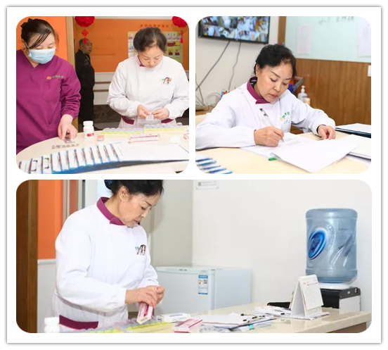 每位老人的日常用藥都是由家屬在醫(yī)生的指導(dǎo)下自主購(gòu)買,再交由養(yǎng)護(hù)中心的工作人員,工作人員根據(jù)醫(yī)囑進(jìn)行配藥。