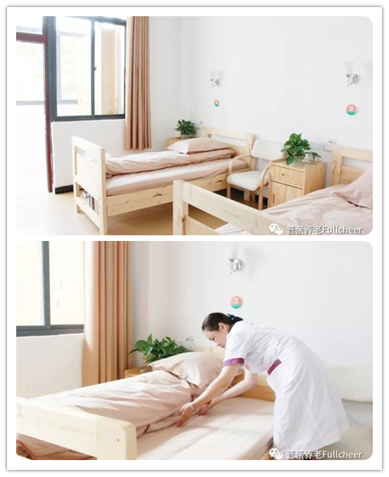養(yǎng)護中心大樓共有5層,目前開放1-2層,一層設有接待、培訓、會議、活動區(qū)域及部分失能老人起居室,以雙人間為主,起居室配備了專業(yè)化護理床及獨立洗漱衛(wèi)生間,保證老年人日常起居的便利性。