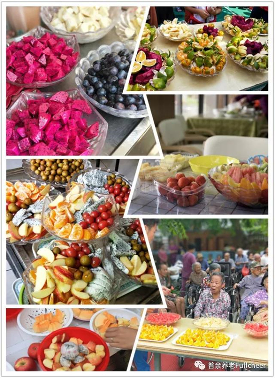養(yǎng)護中心的飲食模式一直保持三餐兩點,兩點的準(zhǔn)備通常是當(dāng)季的水果及一些口感軟糯的糕點,在飲食上創(chuàng)造合理的多樣性,能夠保證老人均衡的營養(yǎng)攝入。