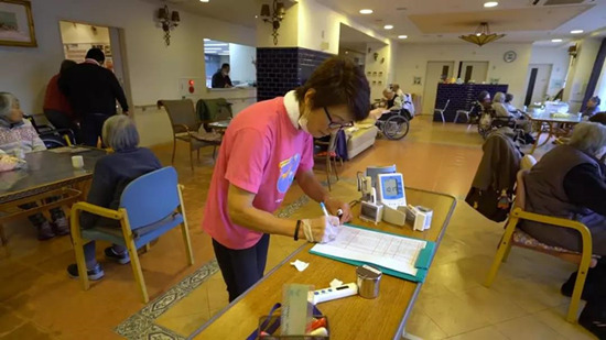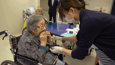 日間照料中心負責人野琦介紹了日間照料的服務內(nèi)容:第一步是檢查老人的體溫和血壓,并做好記錄。