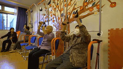 在這里,即使是身體不便,只能坐在輪椅上的老人,也會跟著大家一起做“手指操”。