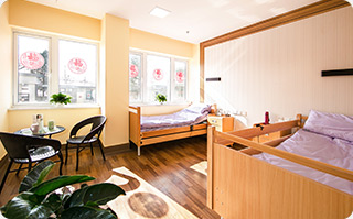 在房間選擇上,?谑衅沼H第一老年養(yǎng)護院提供了多種房間選擇,有:標準單人間,標準雙人間,豪華單人間,豪華雙人間,三人間,六人間等,滿足不同需求的老人。優(yōu)雅怡然的獨立園區(qū)環(huán)境,歐式別墅樓高三層,采光通風良好;園區(qū)花園營造舒適的園林環(huán)境;內外通透式景觀,戶戶開窗見景。精裝修居室,衛(wèi)生間配備整體淋浴房和衛(wèi)生潔具;提供24小時飲用水與生活熱水,以及有線電視、免費寬帶上網等服務。
