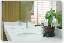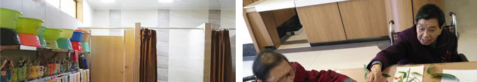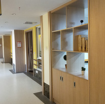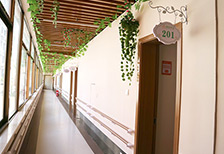 院內裝修布局按照失能、失智老人不同標準合理安排,考慮護理操作的方便性和低風險性,同時兼顧隱私和互不干擾的原則,一樓設為失能老人生活區(qū),內設康復室、護士站、臨終關懷室及老人用餐區(qū)。二樓設為失智老人生活區(qū),內設護士站、用餐室。院區(qū)內還設有公共洗衣房、廚房、倉庫以及后勤行政辦公室。