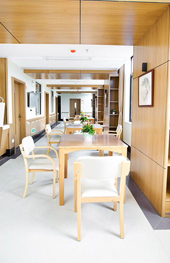 相較室外與自然融為一體的環(huán)境,室內則別具一格。養(yǎng)護院主樓由六個樓層組成,其中二三層為失能老人樓層,四層為自理老人區(qū)域,五層設置為失智老人區(qū)域,分區(qū)護理一直是普親養(yǎng)老的特色,在分區(qū)的基礎上再強調個性化布局,自理老人區(qū)域注重大空間,失智老人區(qū)域則講究小而美,溫馨、巧妙地讓區(qū)域間明顯區(qū)別開來。