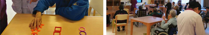 普親龍溪老年養(yǎng)護中心采用分級分區(qū)護理制度,將失智區(qū)與失能區(qū)進行嚴格地劃分。失智區(qū)活動空間設計成洄游式格局,以滿足失智老人對“小空間”的需求,有效緩解老人的焦慮感;失能區(qū)則更注重空間的大、透、亮,能夠讓老人們在溫馨有愛的環(huán)境里開展拼圖、插花、繪畫等個性化的康復訓練。