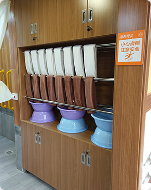 長沙市普親先鋒社區(qū)老年養(yǎng)護中心內設有起居室、護理間、老年活動室、康復診療室、心理咨詢室、洗浴間、洗漱間、衛(wèi)生間等功能空間,遵循無障礙設計理念,功能布局上注重干濕分區(qū),嚴格甄選環(huán)保、醫(yī)療級材料,配置了智能化護理床、智能恒溫沖洗馬桶、一鍵呼叫系統(tǒng)、全天候中央熱水系統(tǒng)等人性化的設施設備,還配置了24小時安全監(jiān)控系統(tǒng)、電梯門禁安全系統(tǒng)等,為入住長者提供安全、舒適的生活環(huán)境。