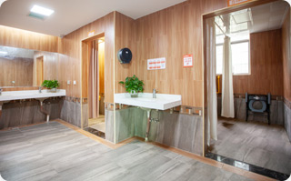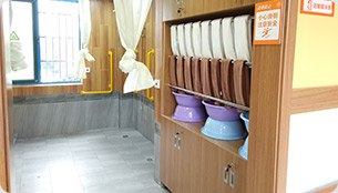 養(yǎng)護中心的改造以普親養(yǎng)老機構3.0版本為標準,布局有起居室、活動室、康復診療室、心理咨詢室、洗浴間、洗漱間以及衛(wèi)生間等功能性空間,室內各項配套設施嚴格遵循無障礙設計理念,充分考慮到失能失智及高齡老年人生理特征,注重干濕分區(qū),甄選環(huán)保材料,配置智能化護理床、智能恒溫沖洗馬桶、一鍵呼叫系統(tǒng)、全天候中央熱水系統(tǒng)等人性化的設施設備,還配置了24小時安全監(jiān)控系統(tǒng)、電梯門禁安全系統(tǒng)等,為入住長者提供舒適、安全的生活環(huán)境。