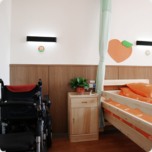 養(yǎng)護中心以普親養(yǎng)老統(tǒng)一的視覺識別系統(tǒng)為標準,橙綠作主色,柔軟清新,室內選用各式木質家具,打造原生態(tài)感,提升居住品質;按照普親養(yǎng)老機構3.0版本的建設標準,養(yǎng)護中心配備了一鍵呼叫系統(tǒng)、24小時監(jiān)控設備、無障礙門禁電梯、全天候中央熱水系統(tǒng)以及高速無線網絡等設施設備,便利老人的在院生活。