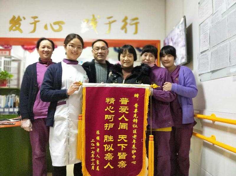 先鋒機(jī)構(gòu)老人家屬贈:普親先鋒社區(qū)老年養(yǎng)護(hù)中心“普愛人間 天下皆親,精心呵護(hù) 勝似親人”