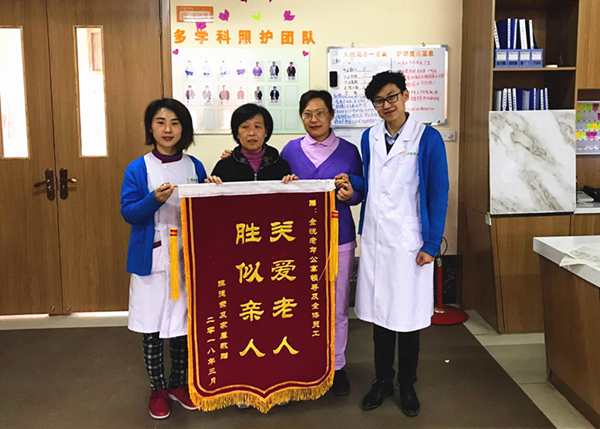 濟(jì)南普親金悅老年養(yǎng)護(hù)中心家屬贈(zèng)送:“關(guān)愛(ài)老人·勝似親人”錦旗!